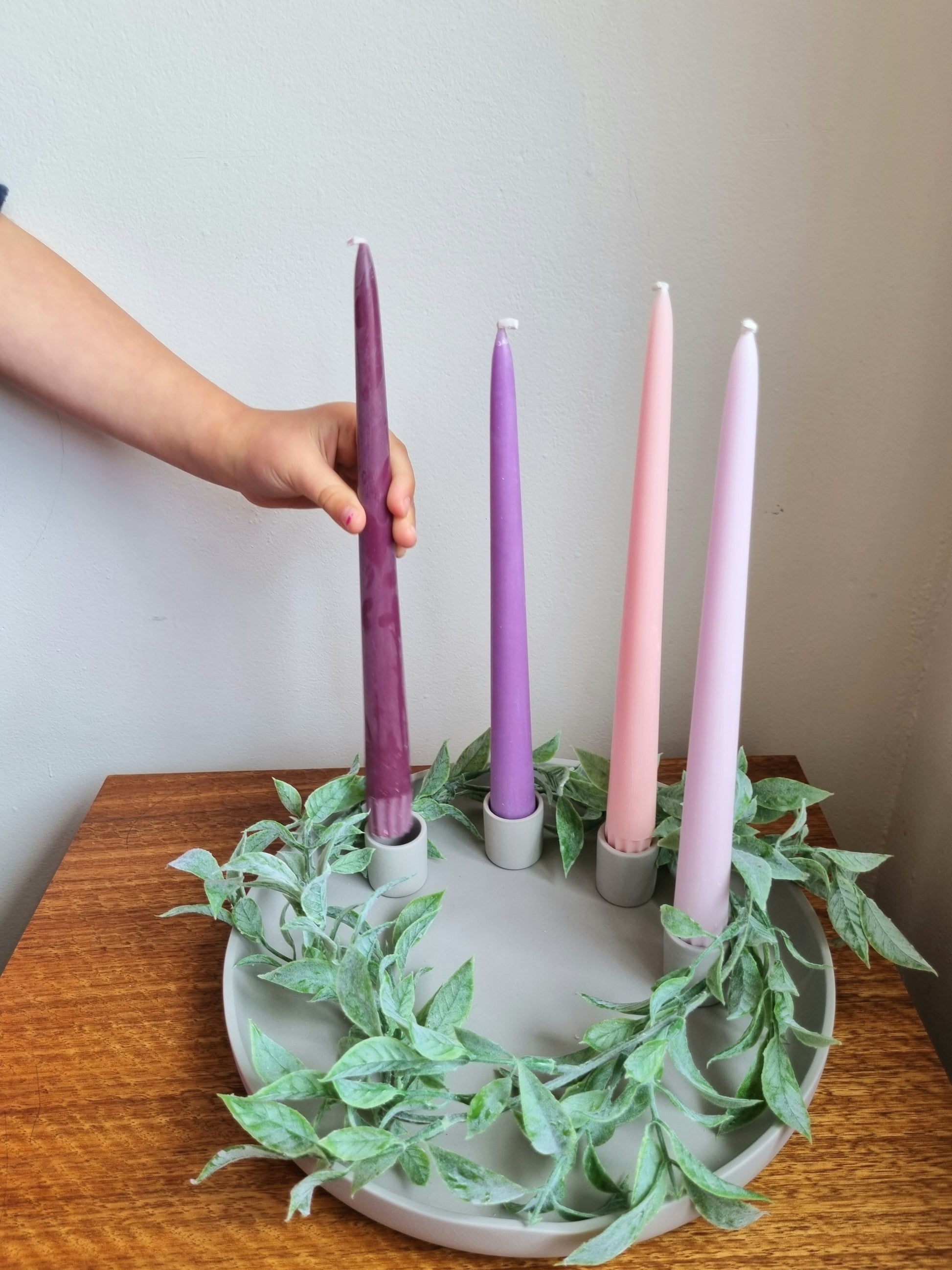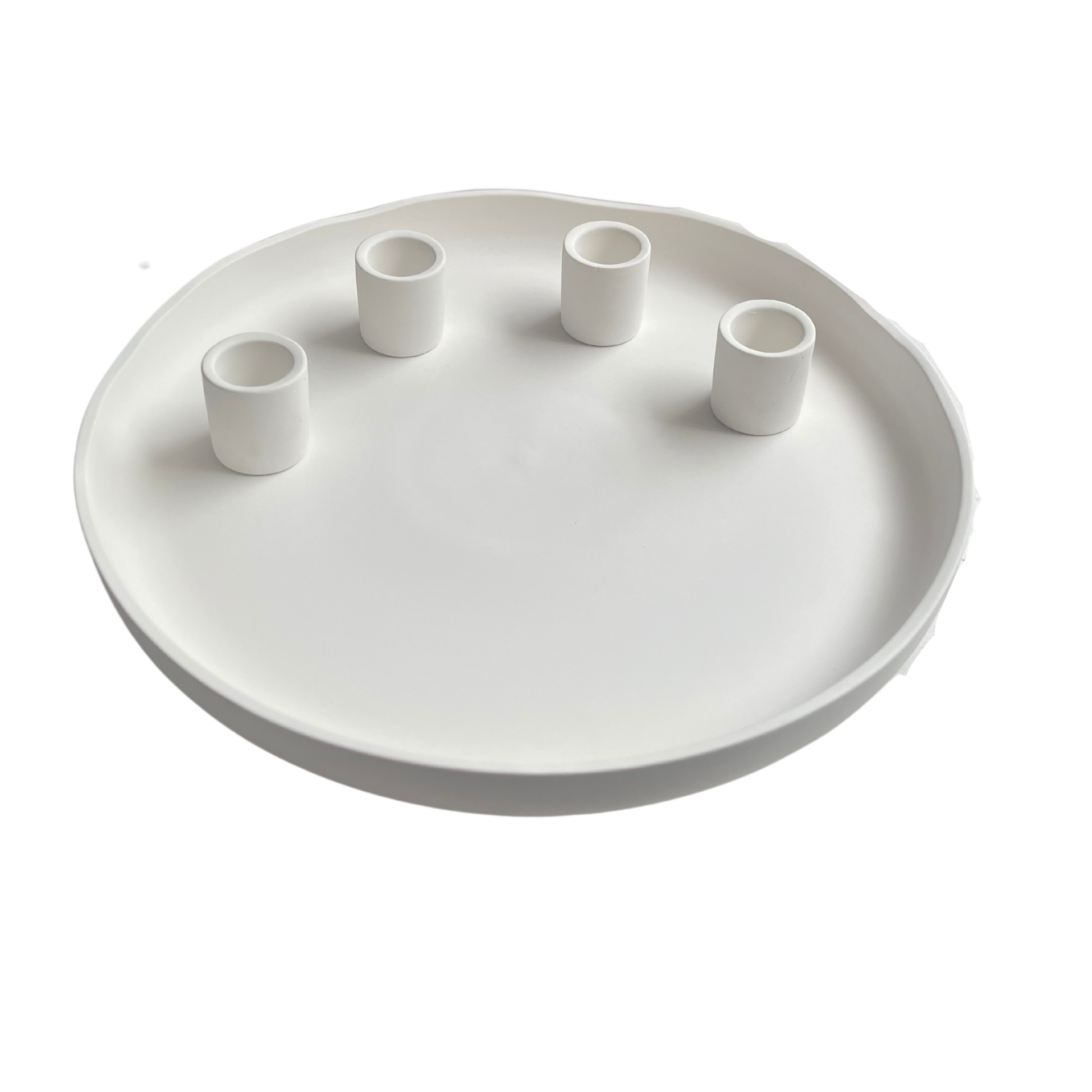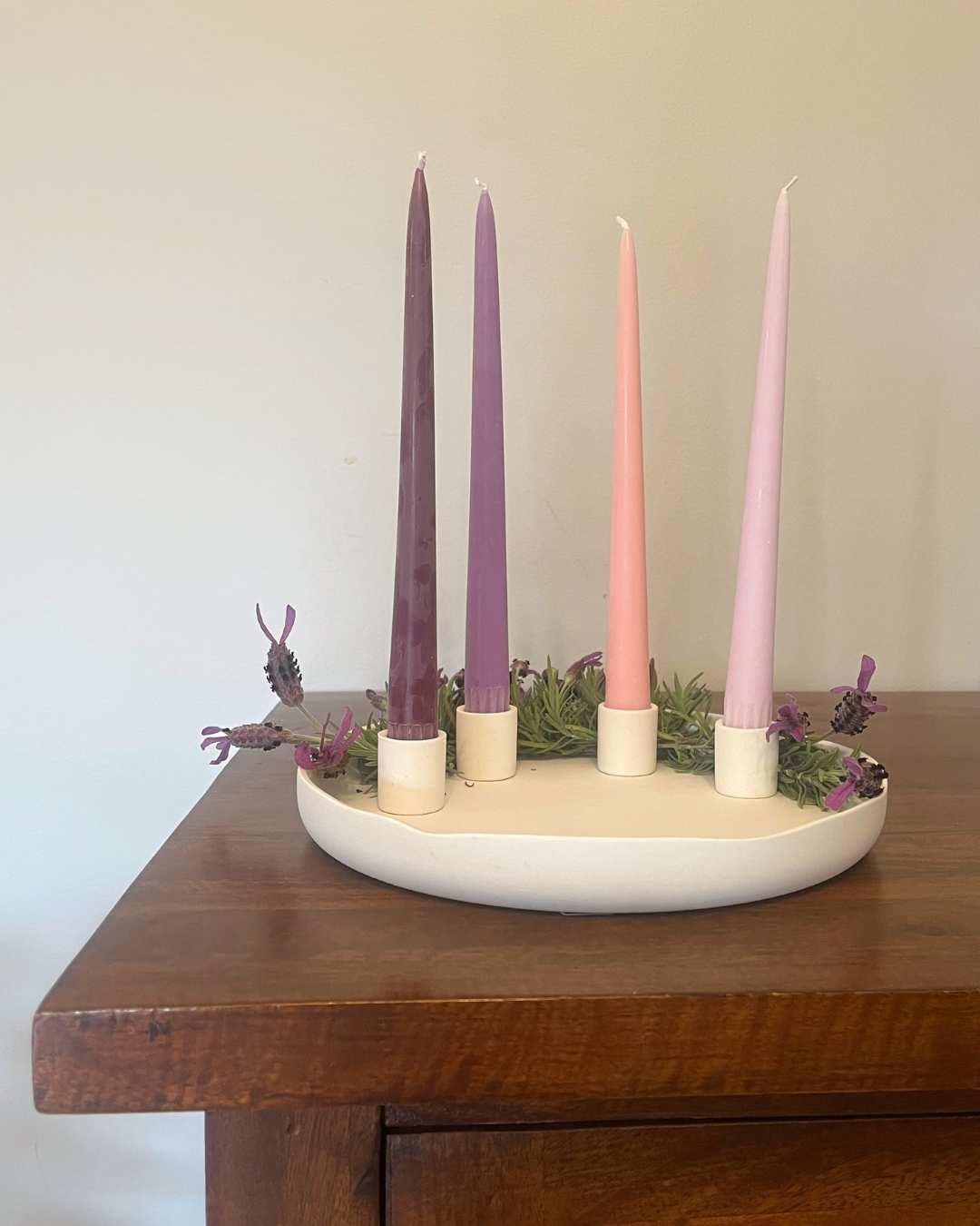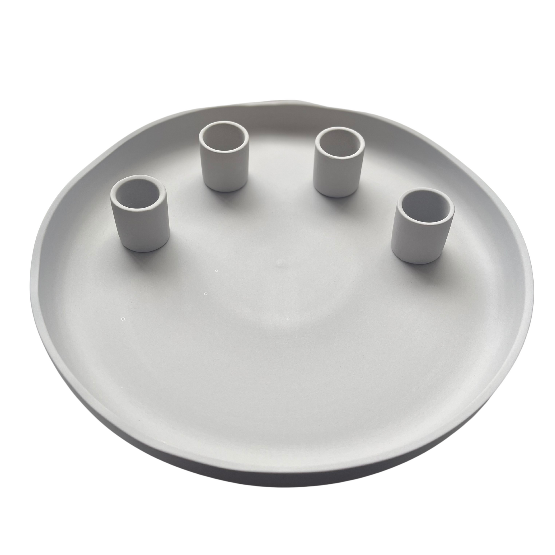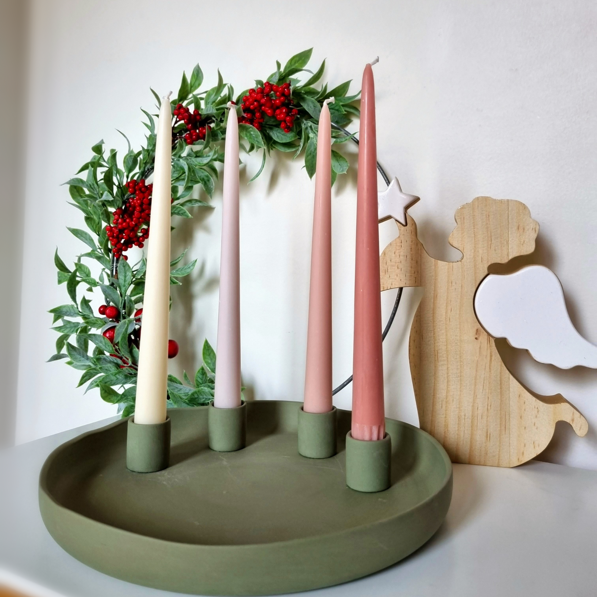 Our beautiful ceramic Advent Wreath comes in three different colours; porcelain white, dove grey, and olive. Measuring at 20cm in diameter, the circular plate holds four tapered candles (2-2.5cm) and is a gorgeous addition to any space.