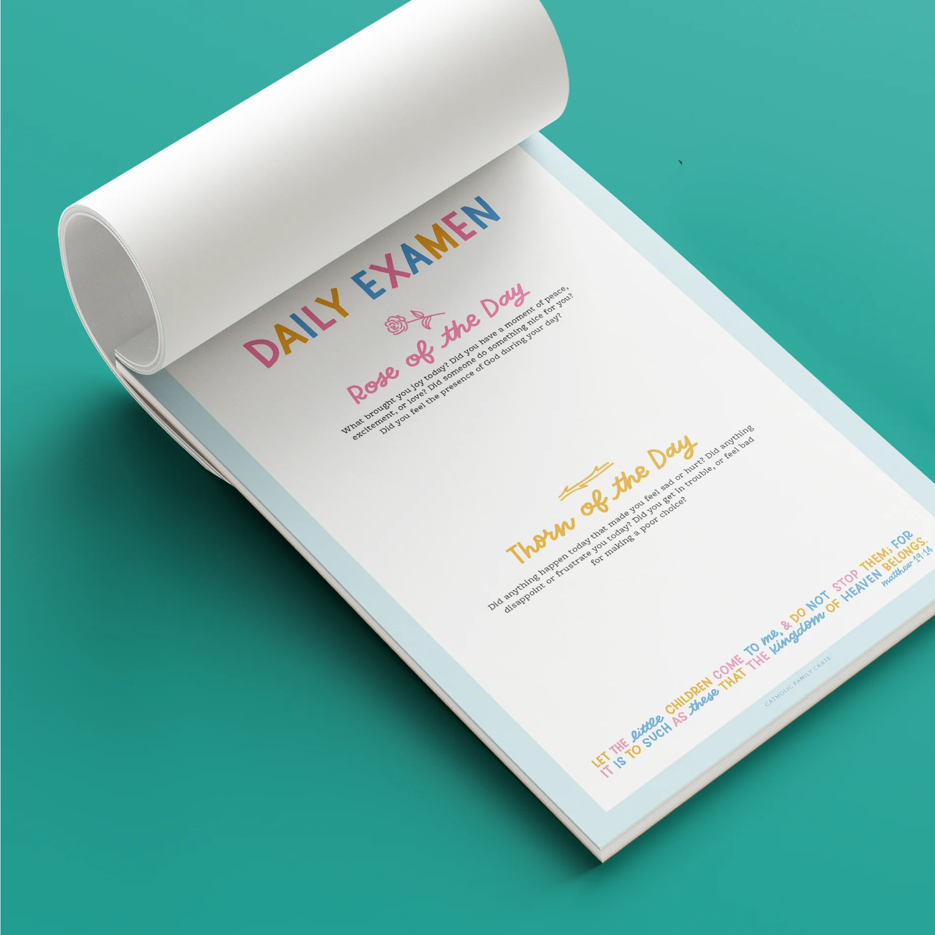 This children's Daily Examen Catholic prayer notepad can be used daily, weekly, or monthly to introduce and guide little ones in examination.
