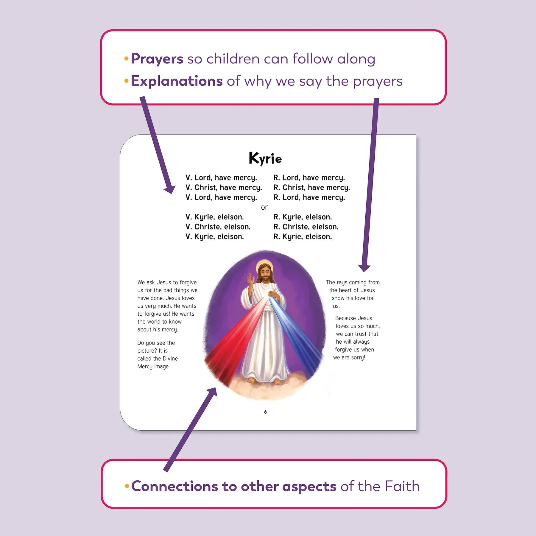 Simple explanations will help them learn the order of the Mass, follow along with the prayers, and discover the wonders that happen at every Mass.