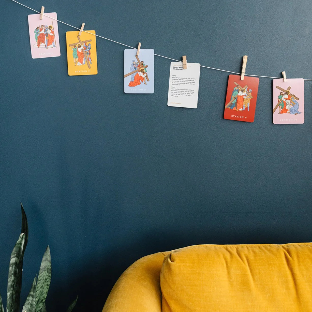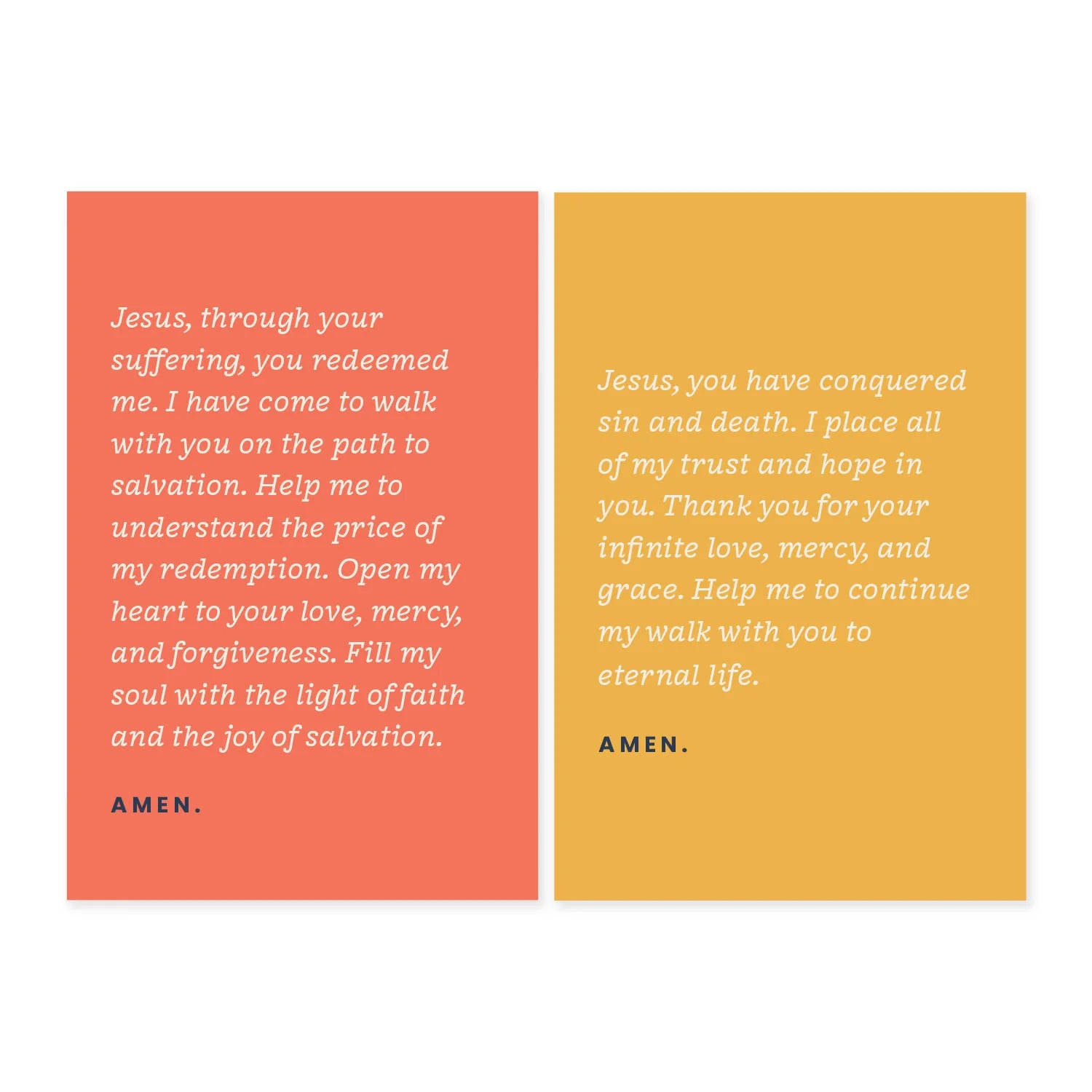 These beautifully illustrated Stations of the Cross cards from Catholic Family Crate will help guide little ones through the passion and death of Christ. Deepen faith and understanding through the provided Scripture references, simple commentary, and age-appropriate prayers.